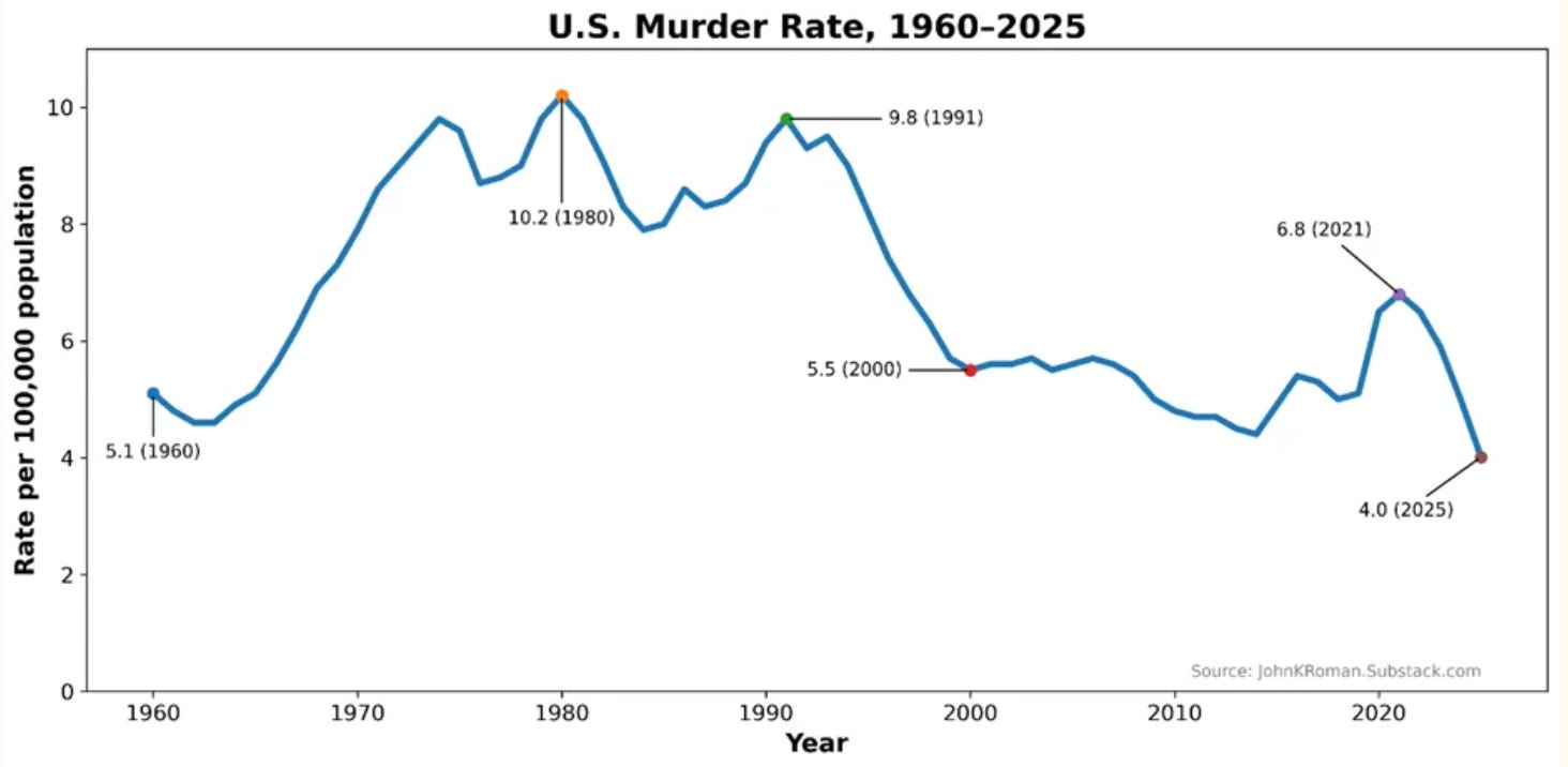John Roman has a roundup on 2025 crime stats, documenting that the decline is enormous and persistent. The one downside here is that if any crime ticks up even a small amount, which has to happen at some point unless we are on track to total crime eradication, it will likely be picked up as much more of a story than the current decline.
